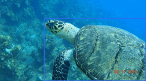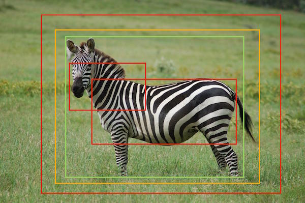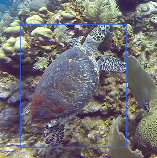 A bounding box needs to cover the entire animal without being too large or too small - the green bounding box is ideal. The big red bounding box has too much background and can be fit tighter around the animal, whereas the two small red bounding boxes are losing information that is important (information about the top of the animal's head and its legs). The orange bounding box is slightly too large, but is also a border-line acceptable bounding box. [7]
