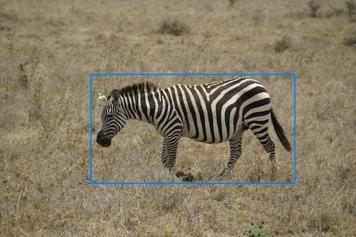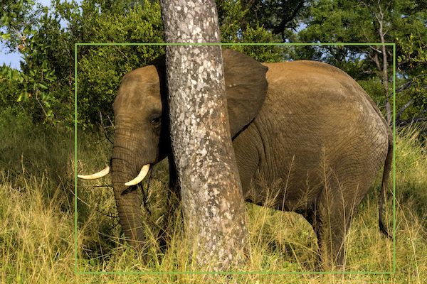 In the event of a significant occlusion of a portion of the animal, try your best to cover as much of the visible portions of the animal as if the occlusion did not exist. This occlusion can be due to other animals, a bush, tall grass, or (in this example) a tree bisecting the entire animal. In this example, two bounding boxes would be incorrect because it would signify that there are two animals in the image. [8]