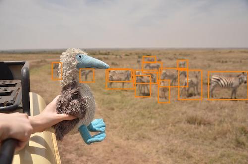 - Find the single best AoI in the image, if it exists. It is important that the best AoI is in focus and has the easiest argument for being an AoI. (For example, the right of the two blue bounding boxes in Example 3 should be chosen as the best AoI because the zebra is more central in the image and it slightly occludes the zebra in the left blue bounding box.) If no such AoI exists, continue to the next image without selecting any AoIs.
